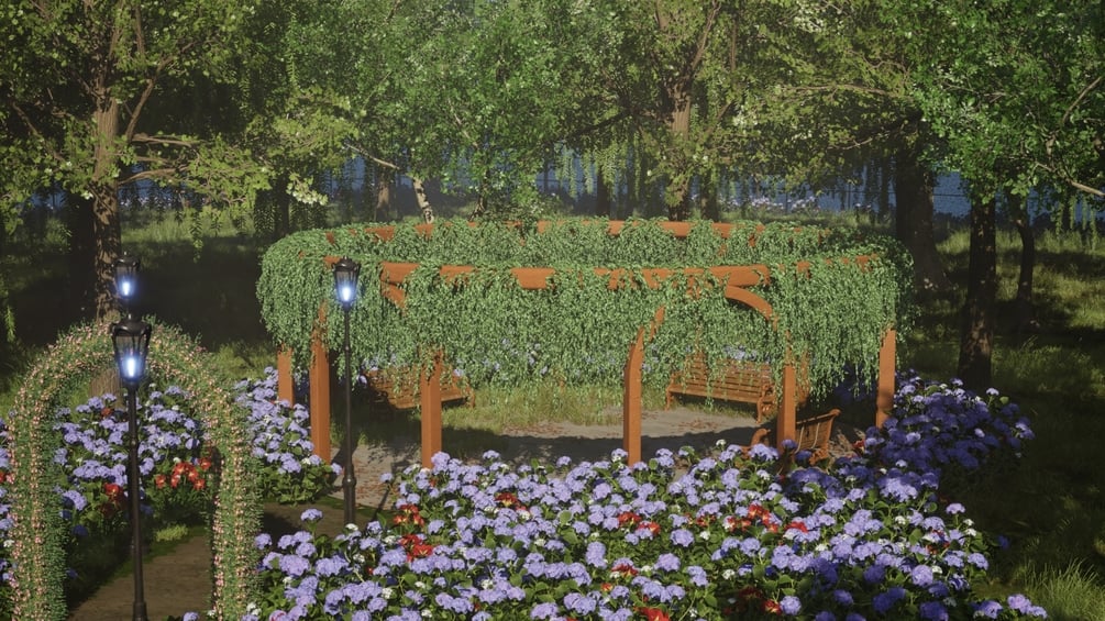 • 348 unique meshes including Bridges, Fences, Lights, Fountain, Flowery Arches, Wooden Arches, Flowers, Bushes, Ivey's, Grass, Trees and much more.