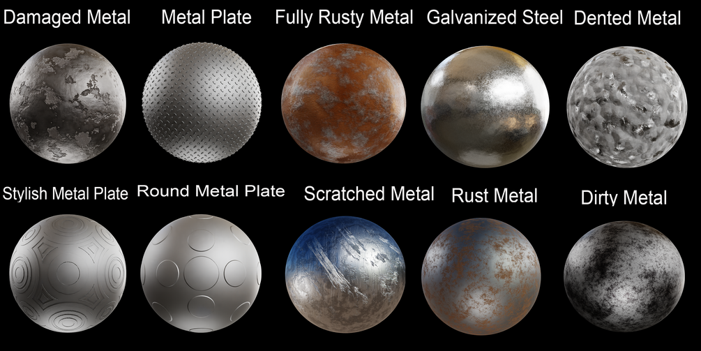 Every material has its own custom node group, using these Custom Node Groups, you can control the colors, metallic value, roughness, bump strength, details, noise scale, displacement along with many other parameters, given in their respective Custom Node.