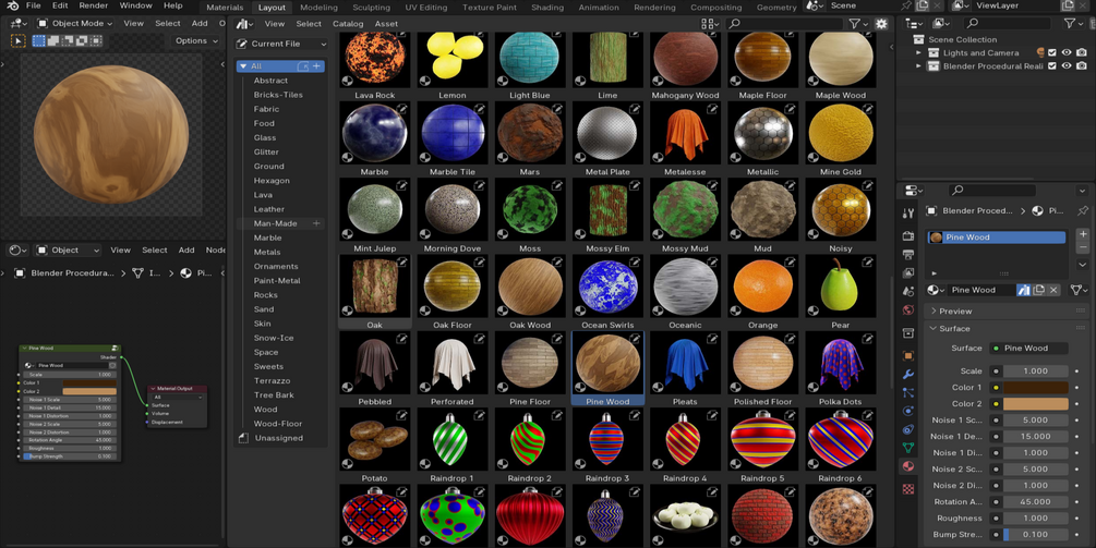 Blender Procedural Realistic Materials Library contains currently 207 realistic Procedural Materials, Blender asset browser setup, Containing 25 different catalogs, Having custom node groups, Custom thumbnails, 25 Packs containing original 3D models & materials, more in future, Design using Blender.